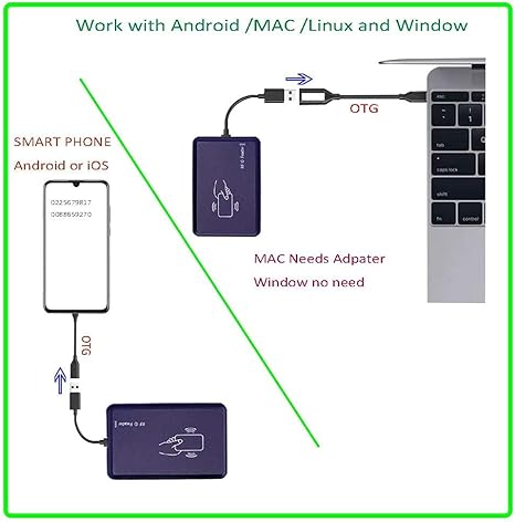 ✔ Fácil de usar: Solo funciona como lector de tarjetas y simula la entrada de teclado, sin necesidad de software adicional. Compatible con Linux, Android, Windows y macOS.